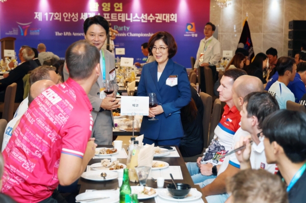 [금요저널] ‘제17회 안성세계소프트테니스선수권대회’의 시작을 알리는 환영연이 9월 2일 오후 6시 더에이더블유웨딩컨벤션에서 김보라 안성시장을 비롯한 내·외빈과 세계 각국의 선수단 등 480여명이 참석한 가운데 성황리에 열렸다.