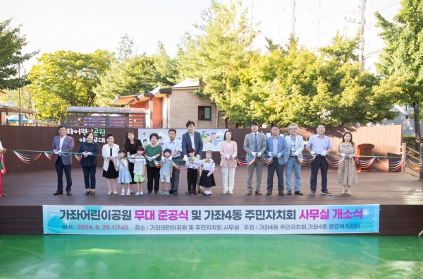 [금요저널] 인천광역시 서구 가좌4동 주민자치회는 지난 8월 29일 ‘가좌 어린이 공원 무대 설치 준공식 및 주민자치회 사무실 개소식’을 개최했다.