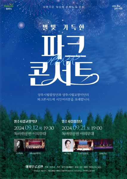 [금요저널] 양주시는 9월 12일과 9월 21일 이틀간 독바위공원 야외무대에서 2024년 양주시립예술단 '별빛 가득한 파크콘서트'를 개최한다고 밝혔다.