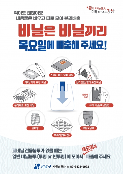 [금요저널] 꿈이 모이는 도시, 미래를 그리는 강남구가 9월부터 12월까지 폐비닐 분리배출 활성화 시범사업을 시행한다.