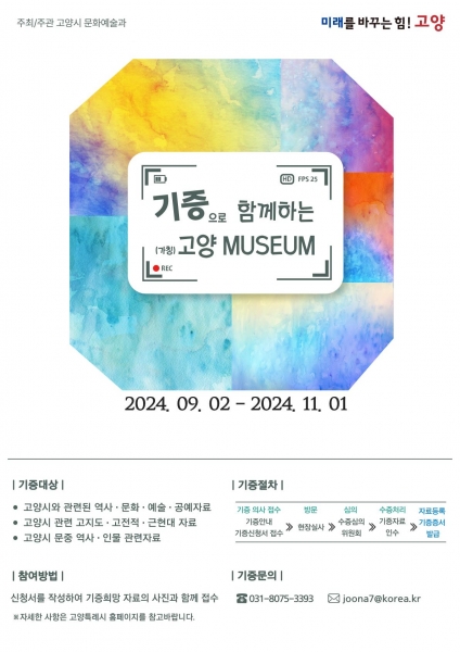 [금요저널] 고양특례시는 9월부터 약 두 달간 박물관 건립에 따른 자료 기증 캠페인을 펼친다고 4일 밝혔다.
