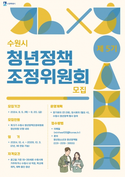 [금요저널] 수원시가 9월 20일까지 제5기 수원시 청년정책조정위원회 청년 위원 모집한다.