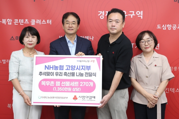 시는 이번 전달식을 통해 기부받은 목우촌 뚝심과 장조림캔 등이 포함된 우리축산물 선물세트 270개를 사회복지공동모금회를 통해 고양시 관내 어려운 가정에 추석 명절 전에 배분해 따뜻한 사랑을 전할 예정이다.