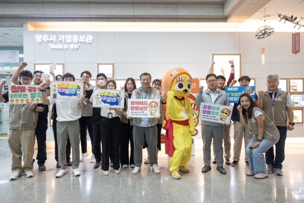 [금요저널] 양주시 홍보정책담당관은 2024년 추석 명절을 앞두고 청렴한 공직 문화를 확산하기 위해 SNS 캐릭터 ‘별산’과 함께하는 “함께해요 청렴실천” 캠페인을 시청 로비에서 진행했다.