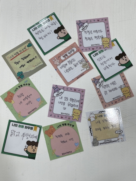 일상 속 청렴 시책 활동으로는 매일 청렴 좌우명 실천 의지를 다지기 위해 ‘나만의 청렴 좌우명’을 만들어 PC 모니터나 업무 팻말 등 잘 보이는 곳에 부착했다.