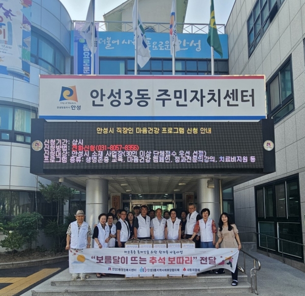 사회적 고립감 해소와 명절 분위기를 도모하기 위해 안성3동 지역사회보장협의체에서 2019년부터 실시하고 있는 사업으로 올해 보따리에는 7만원 상당의 생필품과 즉석식품이 들어있다.