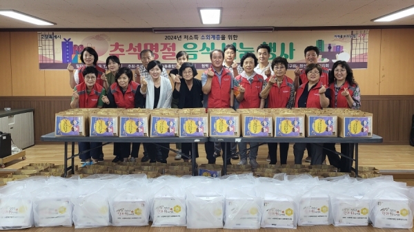 이날 송편, 모둠전, 식혜 등 명절 음식을 담은 선물 꾸러미를 포장해 홀로 지내는 노인가구 등 취약계층 100세대에 전달했다.