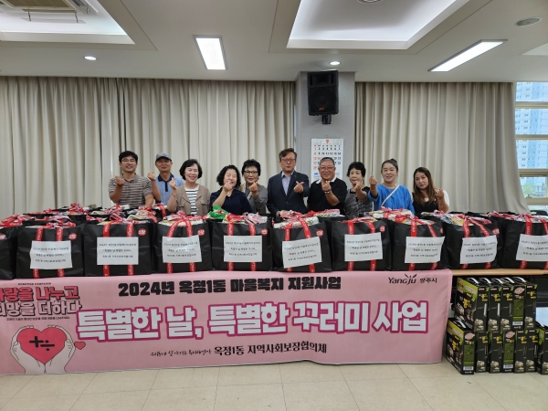 [금요저널] 양주시 옥정1동 지역사회보장협의체가 지난 12일 추석 명절을 앞두고 소외된 이웃들에게 따뜻한 정을 전하기 위한 ‘특별한 날, 특별한 꾸러미’ 사업을 진행했다.