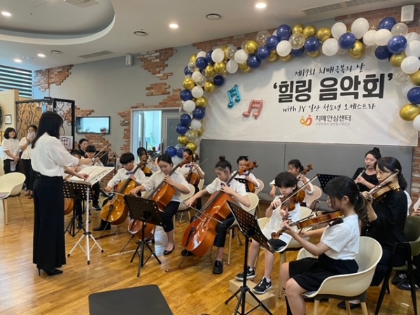 제이와이 유스 오케스트라의 멋진 연주가 울려 퍼진‘힐링음악회’에서 치매환자 · 가족 · 지역주민 등 참석자들과 직원들은 스트레스를 잠시 내려놓고 치유받는 시간을 가졌다.