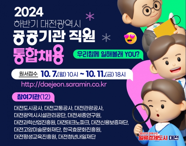 대전시, 2024년 하반기 공공기관 직원 통합채용