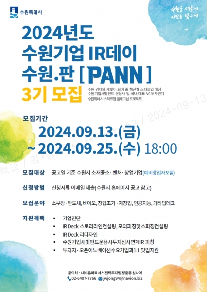 수원시의 유망 중소·벤처·창업기업을 발굴해 IR 역량을 강화하고 투자를 유치할 기회를 제공한다.
