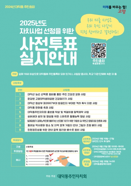 대덕동은 본투표에 앞서 관내 아파트 2곳과 대덕동 행정복지센터에서 진행하는 현장 투표, 포스터의 QR코드 인식 후 참여하는 온라인 투표 방식으로 사전투표도 진행하고 있다.