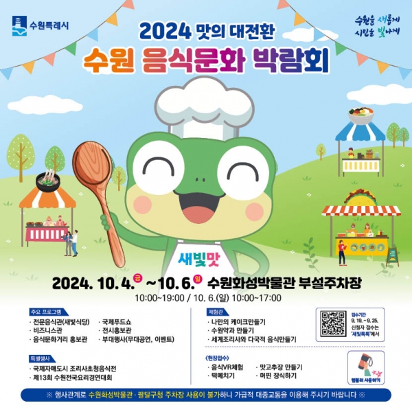 [금요저널] ‘2024 수원음식문화박람회’ 가 10월 4~6일 수원화성박물관 부설주차장에서 열린다.
