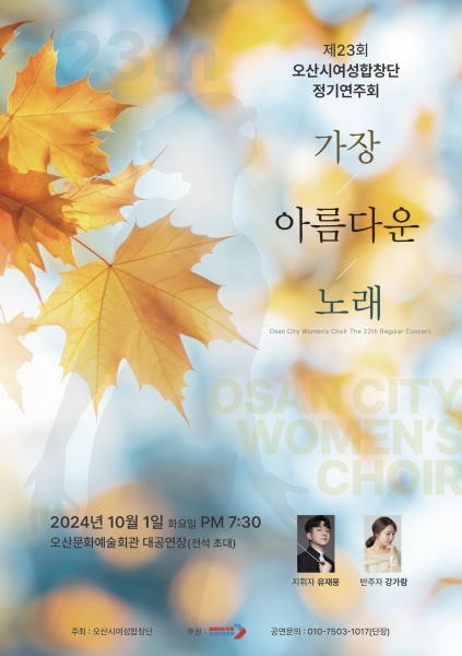 [금요저널] 오산시가 오는 10월 1일 오산문화예술회관 대공연장에서 ‘제23회 오산시여성합창단 정기연주회’를 개최한다.