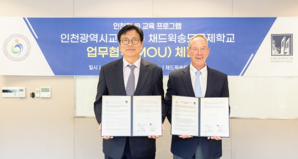 [금요저널] 인천광역시교육청은 채드윅송도국제학교와 인천형 IB프로그램과 교원 연수 프로그램 상호협력을 위한 업무협약’ 25일 채드윅송도국제학교에서 맺었다.