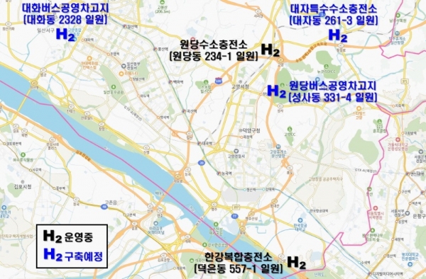 또한 시는 2025년 2월 대화버스공영차고지 내 수소충전소를 구축하고 추가로 2026년까지 원당버스공영차고지를 조성해 차고지 내 버스 및 승용차용 수소충전소를 구축할 계획이다.