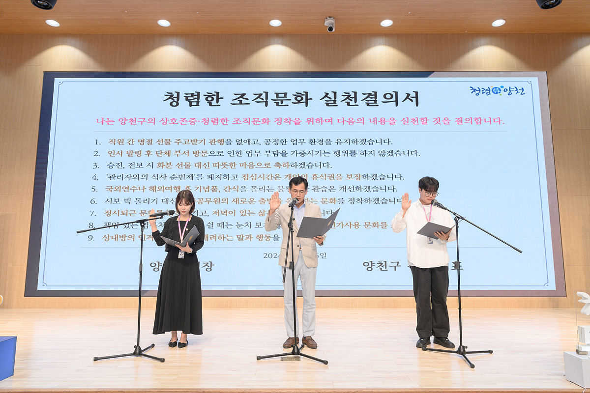 이기재 양천구청장은 “굳어진 관습은 세대 간 소통을 저해하고 시대의 흐름에 맞는 유연한 조직문화를 조성하는 데 걸림돌이 될 수 있다”면서 “불합리한 관행은 바로잡고 상호 존중에 기반한 건강한 기관 운영을 위해 더욱 노력하겠다”고 덧붙였다.