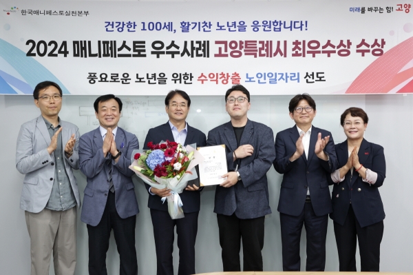 고양특례시는 지난 8월 한국매니페스토실천본부와 경남연구원이 공동으로 주최한 2024 매니페스토 우수사례 경진대회에서 행주농가, 할머니와 재봉틀, GS25 시니어 편의점 사례를 소개하고 풍요로운 노년을 위한 선도적인 노인일자리라는 평가를 받으며 고양시는 최우수상을 수상했다.