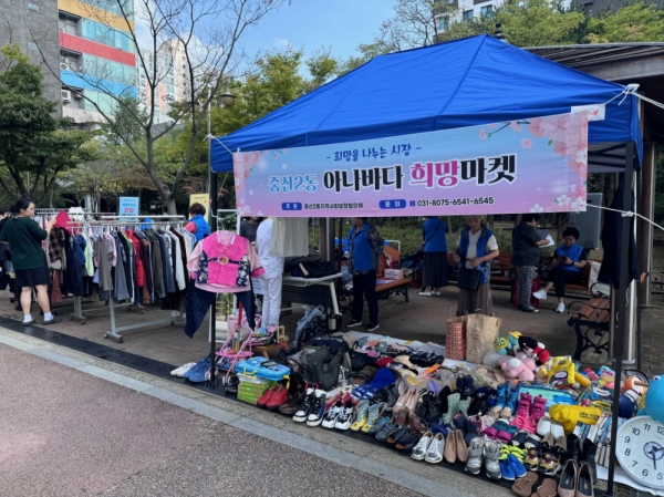 [금요저널] 고양특례시 일산동구 중산2동 지역사회보장협의체는 지난 27일 풍산역 일반광장에서 아나바다 사업인 희망마켓을 개최했다.