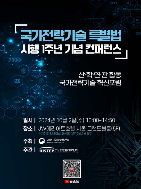 과기정통부, 10월 2일 국가전략기술 특별법 시행 1주년 기념 학술회의 개최