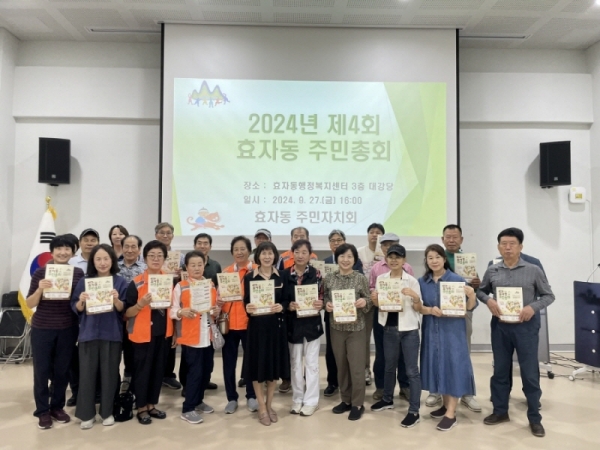 최희례 주민자치회장은 “제4회 주민총회를 성공적으로 개최할 수 있게 노력해 준 주민자치회 위원과 주민들에게 감사하다 2025년에 새롭게 채택된 마을 의제 사업을 각 분과와 위원들이 화합해 성공적으로 추진하고 오늘 이 자리에서 제시된 의견을 수렴하며 소통하고 성장하는 효자동 주민자치회가 되겠다”고 말했다.