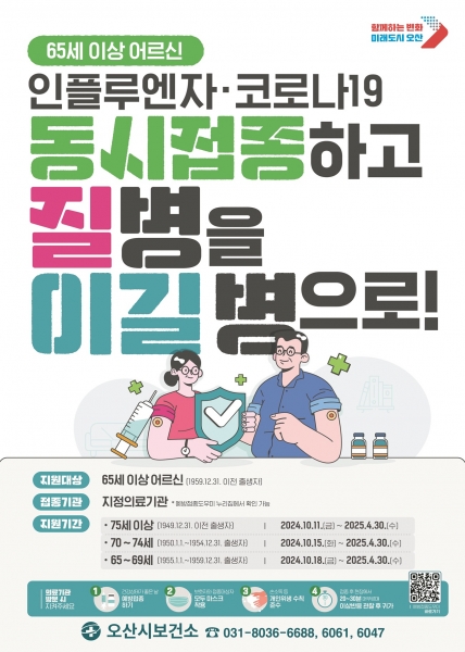 [금요저널] 오산시는 65세 이상 어르신을 대상으로 24-25절기 코로나19 예방백신 무료 접종을 오는 11일부터 시작한다.