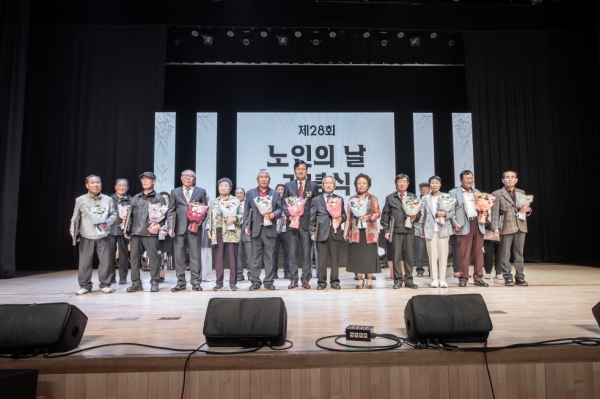 이날 기념식은 노인여가복지시설의 평생교육 프로그램에 참여하시는 어르신들의 △댄스스포츠 △한국무용 △우쿨렐레 △합창 등 다양한 식전 행사를 시작으로 노인복지증진을 위해 노력하신 모범노인 24명과 노인복지유공자 14명에게 표창장을 수여하며 1부가 마무리됐다.