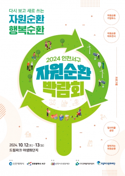 [금요저널] 인천 서구는 오는 12일부터 13일까지 수도권매립지 내 드림파크 야생화단지 일원에서 ‘2024 인천서구 업사이클 페스티벌’과 ‘자원순환 박람회’를 개최한다고 10일 밝혔다.