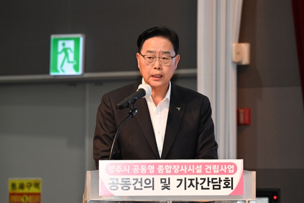 [금요저널] ‘양주시 공동형 종합장사시설’을 공동 추진하는 양주시, 남양주시, 의정부시, 구리시, 포천시, 동두천시가 10일 경기섬유종합지원센터 컨벤션홀에서 한자리에 모여 공동 건의 및 기자 간담회를 개최했다.
