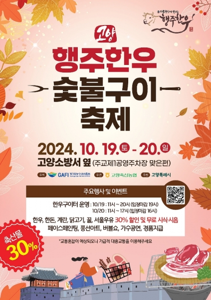 [금요저널] 고양특례시가 후원하고 고양축협이 주관·주최하는 ‘2024 행주한우 숯불구이 축제’ 가 10월 19,20일 양일간 고양시 덕양구 주교동 153-52번지 일원에서 개최된다.