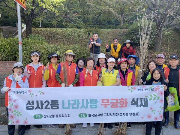 [금요저널] 고양특례시 덕양구 성사2동 통장협의회는 지난 12일 아름다운 마을을 조성하기 위해 ‘나라사랑 무궁화 식재’ 활동을 실시했다.