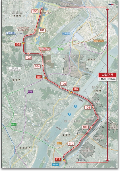 대장~홍대선은 부천 대장지구와 고양 덕은지구, 서울 홍대입구역까지 20km를 운행하며 총 27분이 소요된다.
