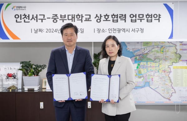 [금요저널] 인천 서구는 중부대학교 원격대학원과 지난 15일 ‘인천서구-중부대학교 상호협력 업무협약’을 체결했다.