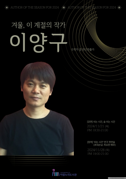 2024년 겨울을 장식할 이양구 작가는 2008년 서울신문 신춘문예 희곡 부문에 당선된‘별방’ 으로 등단한 극작가이다.