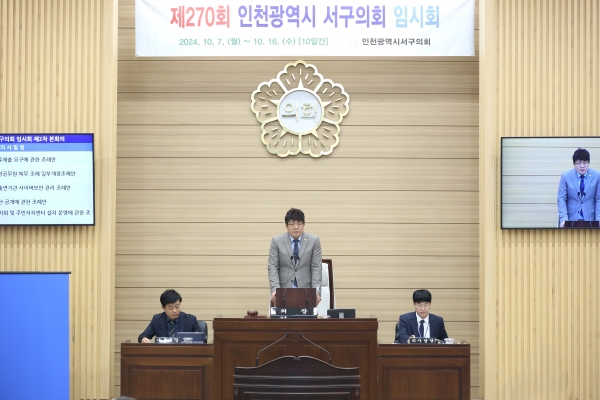 [금요저널] 인천 서구의회가 제270회 임시회 제2차 본회의를 열어 10일간의 의사일정을 모두 마쳤다.