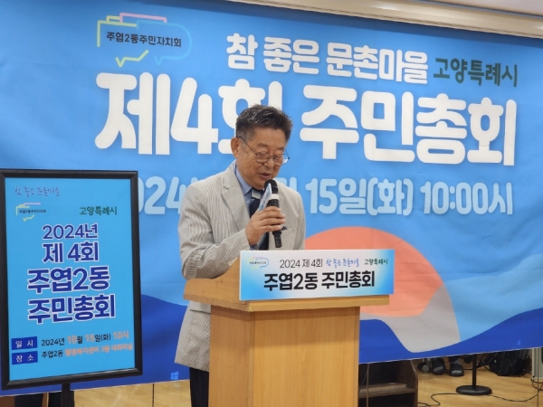 [금요저널] 고양특례시 일산서구 주엽2동 주민자치회는 지난 15일 동 행정복지센터 3층 대강당에서 ‘2024년 주엽2동 주민총회’를 개최했다.