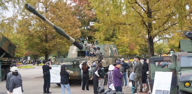 오전 11시부터 열린 식전행사에서는 K2전차, K9자주포, 천무, 현궁, 장갑차, 소형전술차량, UAV(무인항공기), 전술드론, 각종 개인화기 등 다양한 군 장비가 전시돼 시민들이 평소 만나기 힘든 최신 전투장비를 직접 만져보고 탑승하는 체험의 시간을 가졌다.