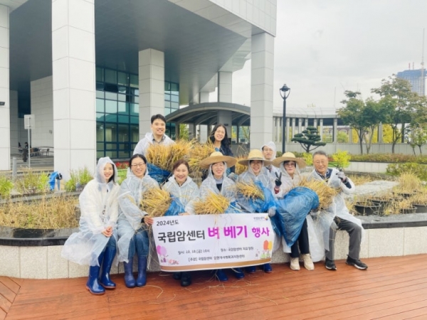 이번 행사에서는 고양시 농업기술센터와 국립암센터 관계자 10명이 참여해 환우들과 함께 암센터 내 치유정원에서 가와지 1호 벼를 수확했다.