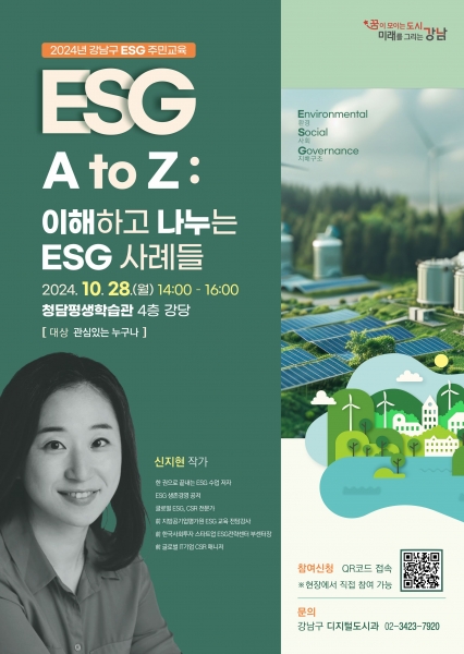 강남구, 구민 대상 ESG 특강 개최.지속가능한 미래 함께 그려요