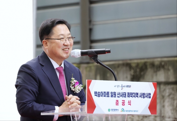 [금요저널] 대전시와 대덕구는 21일 대덕구 읍내동 백송아파트에서 ‘산사태 취약지역 사방사업 준공식’을 개최했다.