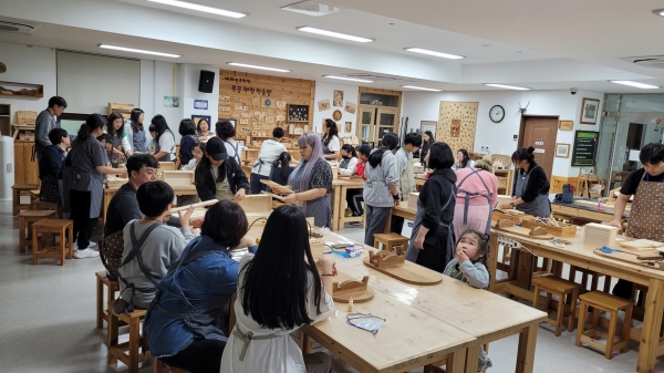 프로그램에 참여한 가족들은 휴양림 숲길 단풍을 보며 힐링의 시간을 보냈으며 미니 서랍장과 원형 캠핑 티테이블을 협력해 만들면서 우드버닝을 활용해 가족들의 이름을 새겨넣으며 소중한 추억을 공유했다.
