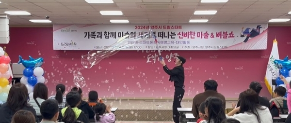 [금요저널] 양주시가 지난 21일 드림스타트 가정 아동들과 학부모들을 대상으로 ‘가족과 함께 마술의 세계로 떠나는 신비한 마술쇼’ 행사를 진행했다고 밝혔다.
