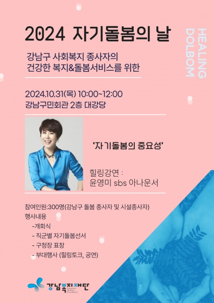 강남복지재단에서 주관하는 이 행사는 종사자들의 자기돌봄을 위한 프로그램으로 구성했다.