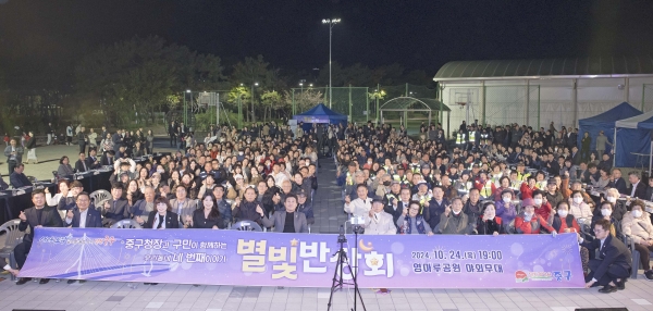[금요저널] 인천시 중구는 김정헌 구청장을 비롯해 시·구의원, 유관기관, 관계 공무원, 지역주민 등 500여명이 참석한 가운데 민선 8기 네 번째 ‘별빛반상회’를 성황리에 개최했다.