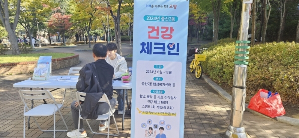 [금요저널] 고양특례시 일산동구 중산2동은 지난 25일 이마트 풍산점 앞 공터에서 주민들을 위한 건강관리 프로그램 ‘셀프 건강관리 스탬프: 건강 체크인’을 진행했다고 밝혔다.