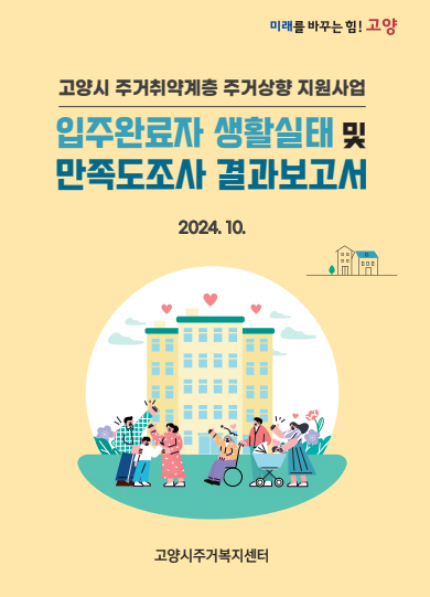 [금요저널] 고양특례시는 ‘고양시 주거취약계층 주거상향 지원사업 입주완료자 생활실태 및 만족도조사 결과보고서’를 발간하고 전국의 주거복지센터 등 주거복지 관련기관 66개소에 배포했다고 밝혔다.