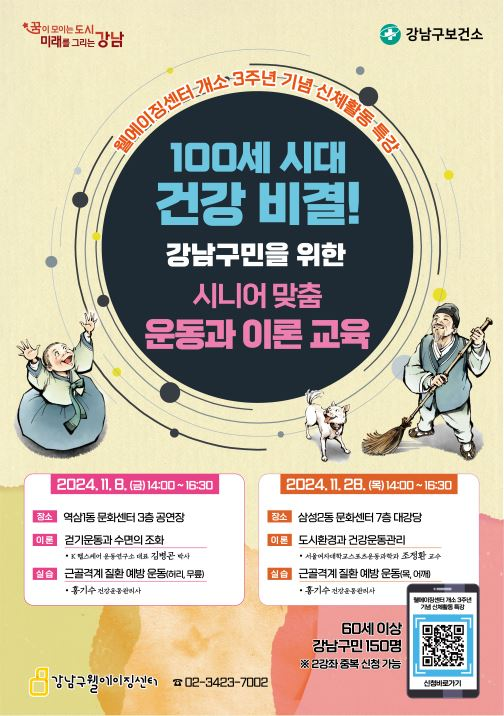 [금요저널] 꿈이 모이는 도시, 미래를 그리는 강남구가 웰에이징센터 개소 3주년을 맞아 특별 강좌 ‘100세 시대 건강비결 시니어 맞춤 운동과 이론 교육’을 개최한다.