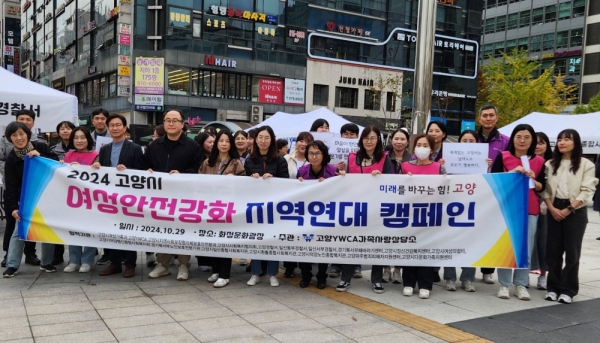 [금요저널] 고양YWCA가족사랑상담소는 지난 29일 화정역 문화광장에서 고양시청 여성가족과, 고양시지역사회보장협의체 보호안전분과와 함께 2024년 고양시 여성안전강화 지역연대 캠페인을 추진했다.