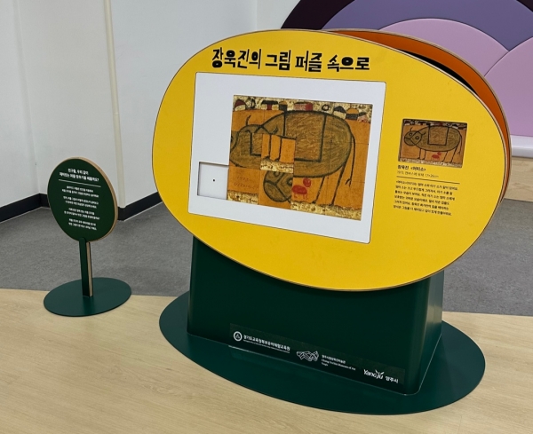 특히 장욱진 작가의 대표작인 ‘어미소’ 와 ‘가족’을 슬라이드 퍼즐 형식으로 제작해 어린이들이 그림을 자유롭게 맞춰보며 장욱진 작가의 예술세계를 쉽게 접하고 이해하면서 예술적 감각을 키울 수 있게 마련되어 눈길을 끌고 있다.