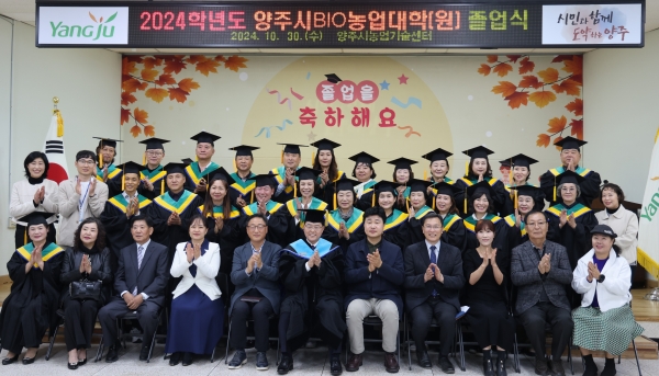 [금요저널] 양주시가 지난 10월 30일 양주시농업기술센터 대강당에서 졸업생 및 내빈 100여명이 참여한 가운데 제19기 양주시BIO농업대학과 제14기 BIO농업대학원 졸업식을 개최했다고 밝혔다.